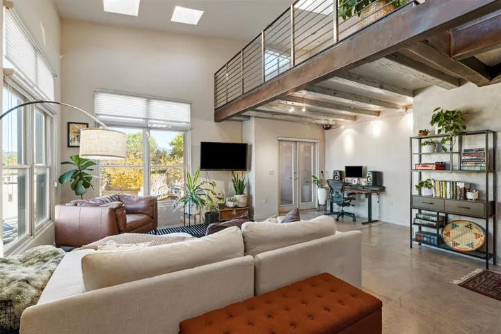Contemporary live/work condo located in the highly sought-after South Capitol neighborhoodājust a short walk to the Santa Fe Plaza and less than a mile from the Railyard District. Enjoy easy access to Whole Foods, Trader Joeās, Natural Grocers, popular restaurants, and a variety of local amenities. This two-level, second-floor residence offers 1 bedroom and 2 baths (1 full, 1 half) and is quietly tucked away at the back of the complex for added privacy. Expansive windows frame views of the Sangre de Cristo Mountains, while clerestory windows and soaring 17ā ceilings fill the space with natural light. The open floor plan features a modern kitchen, sleek concrete floors with in-floor radiant heat, and a brand new evaporative cooler. Step out from the living area onto a spacious deck to enjoy outdoor living and mountain views. Upstairs, the lofted bedroom offers generous closet space, a ¾ bath with a steam shower, and stackable laundry. Donāt miss this unique opportunity to own a stylish and light-filled home in one of Santa Feās most desirable neighborhoods.