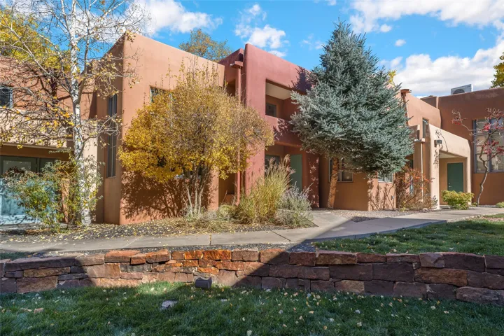 Set within the tranquil, landscaped interior of the Marquez Lofts complex, this bright, stylish condo–with no unit above it–has a desirable ground-floor entrance and rare, private back courtyard. The kitchen is creatively divided into two areas. Sink and storage are tucked tidily into a Butler’s Pantry wing while a refrigerator and induction stove run along the wall behind the gorgeous, live edge, cherry and sapele wood dining counter by Boxcar Woody. A gentle flight of steps, with under-stair storage, leads to the sleeping loft. Downstairs, the spacious main bedroom has an ensuite, ¾ bath. Two double doors access the walled courtyard, perfect for pets or as an intimate retreat. Alternatively, with its back gate entry, this space could serve clients, leaving the main section for personal use. Graced with character, convenience and contemporary charm, this live-work dwelling favors the needs of creatives, entrepreneurs, and anyone seeking a residential refuge in a prime location by the Railyard, restaurants and shopping.