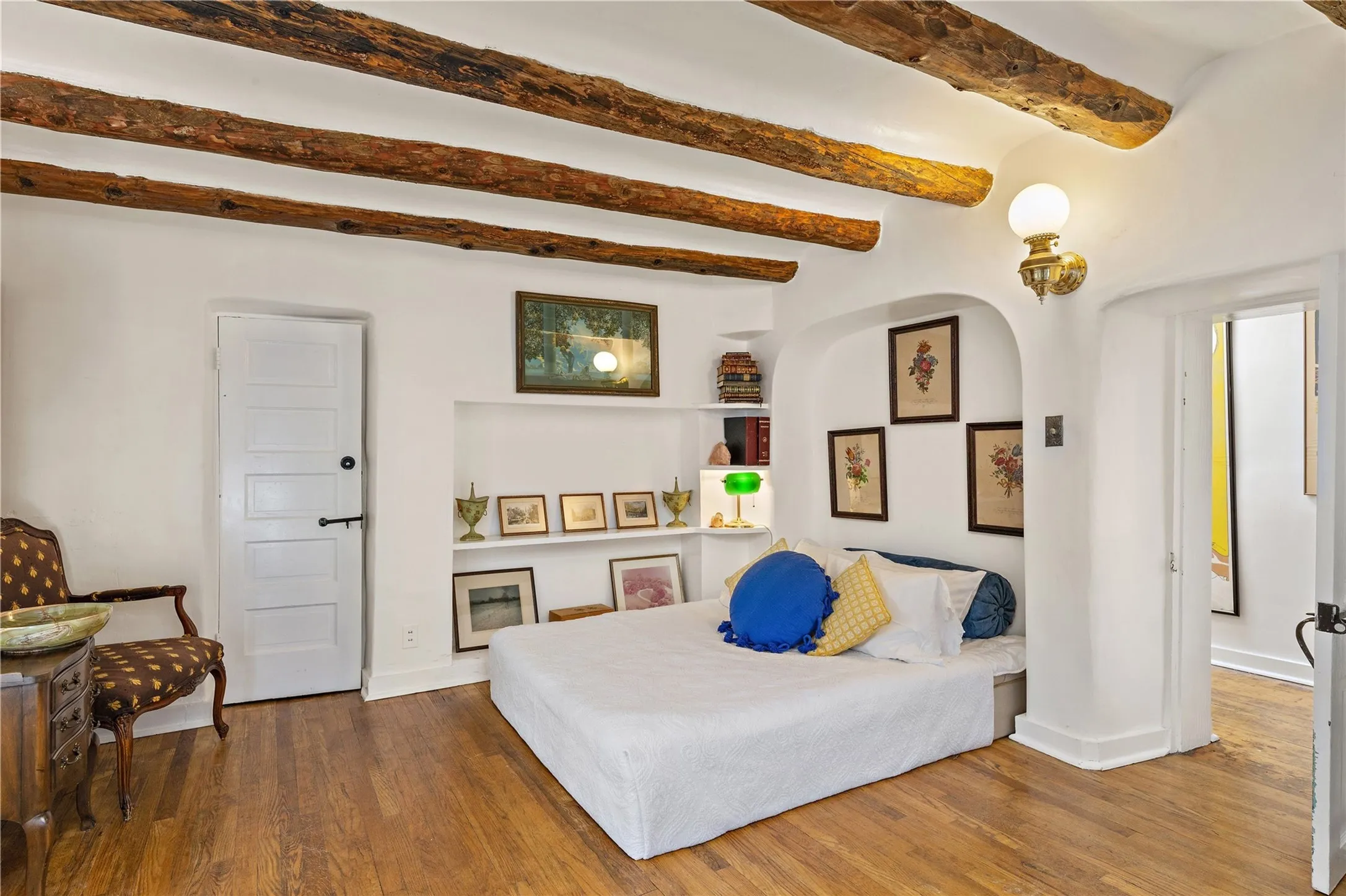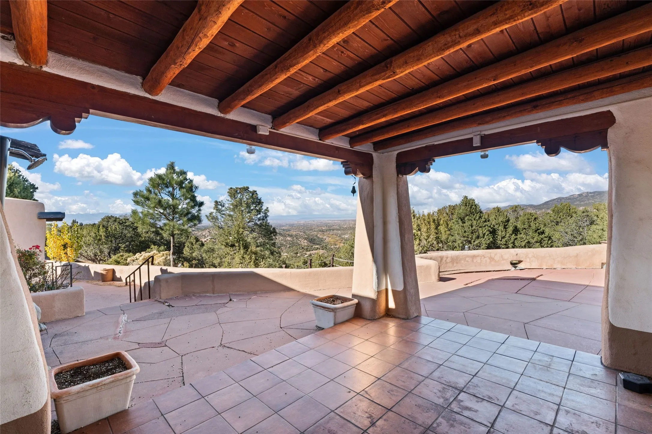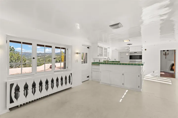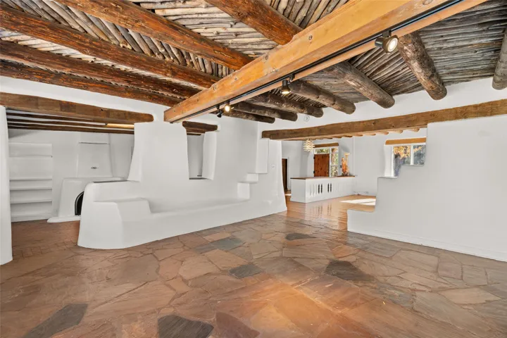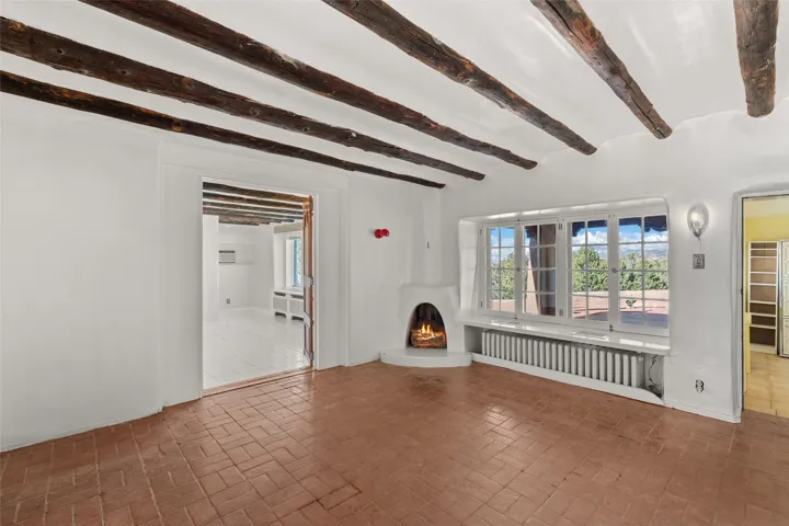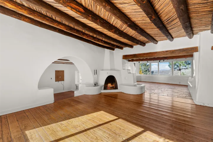 Set atop a private ridgeline with more than seven acres of pristine land, this remarkable residence is both a sanctuary and a celebration of Santa Feās cultural and architectural heritage. According to prior sellers/listings, this home may have been designed in the 1920s by John Gaw Meem, one of New Mexicoās most influential architects (buyer to verify). The home exemplifies the Spanish Pueblo Revival style that helped define Santa Feās visual identity. Encompassing over 6,000± square feet, this classic triple-adobe hacienda is rich with craftsmanship and character. Hand-carved wooden doors, more than two centuries old, welcome you into spaces graced with flagstone and oak plank floors, massive vigas, and hand-hewn willow herringbone ceilingsāeach element adding warmth, texture, and timeless appeal. The main residence offers four bedrooms and four baths, complemented by two charming guest casitas. The bright kitchen features a breakfast nook that opens to multiple patios and courtyards, perfect for dining al fresco while taking in the far-reaching mountain views. Distinctive architectural moments define the home: a gracious adobe-arched dining room, coved ceilings, and divided-light windows that fill the interiors with natural light. According to prior sellers/listings, a studioāoriginally used in the 1930s by artist McHarg (buyer to verify) Davenport of The Rio Grande Paintersāserves as a creative retreat with soaring split cedar ceilings, and access to a rooftop viewing area, ideal for sunsets and stargazing. The location is exceptionalācompletely private yet nearby Santa Feās historic Plaza, the Santa Fe Opera and approximately 25 minutes to Ski Santa Fe. Disclaimer: Furnished photos are from 2023. Current photos are of unfurnished property. Seller has never resided in home. Property is being sold in AS-IS, in its current condition.