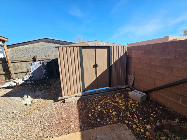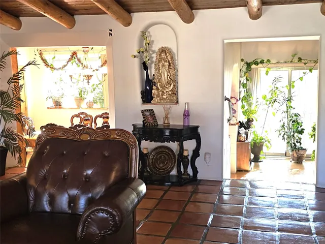 This is no ordinary manufactured home. Unique in so many ways: stuccoed double-wide with significant on-site-built additions. Large corner lot. Permanent foundation. Saltillo floor tile, vigas, hard trowel plaster walls, and a metal roof. Newer Anderson windows, four good-sized bedrooms, and three full baths. Radient heat . Large living and dining rooms and a fabulous kitchen. This home sits on a large .22-acre lot with a covered outdoor kitchen and entertainment area, plus a fire pit. Fully fenced and walled-in yard with double gates and a double carport and a concrete driveway for parking