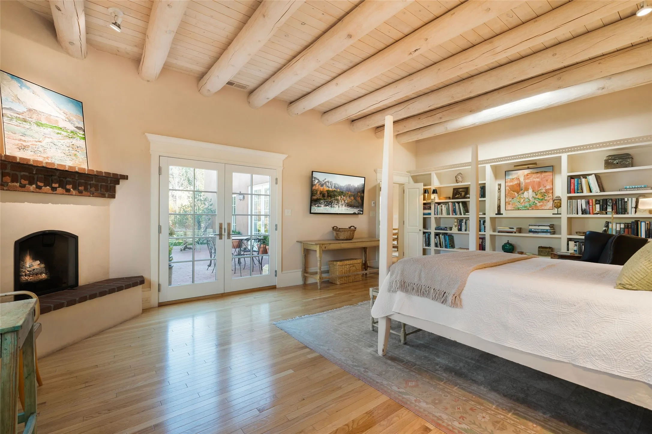 Built in 2019 in the desirable Museum Hill neighborhood, this is Doug Atwillās last home and is the culmination of his inspired sense of design over several decades. Discreetly nestled on a little over 1 maturely treed and impeccably landscaped acre, this 2,400 sq.ft. home was designed with over 50 years of personal love and experience, and built with a timelessness of exceptional Santa Fe character. Morning and afternoon sunlight wash the walls and wood floors in the substantial living and formal dining areas with high ceilings graced with white-washed rounded vigas and latillas. The adjacent eat-in kitchen is equipped with top of the line stainless steel appliances, granite counters, with glass French doors and windows showcasing the multi-seasonal gardens. The large owners bedroom, bath and study are spa-like in nature with access to private patios and a lovely entertaining loggia. The 800 sq.ft. art studio boasts brick floors, wrapped completely in warmth and sunlight from banks of double hung windows, French doors and skylights, and could be easily converted into another large bedroom. An oversized 2-car garage is tucked from the front elevation with plenty of guest parking on site. The home is equipped with two wood burning fireplaces, radiant floor heating, as well as forced air heating and cooling all on one level. A shared well aids in irrigation of the gardens. The outdoor spaces with sumptuous landscaping frame every corner of the property and bring the beauty of nature inside. The premier, private location, in addition to the high-end details of the home, embody an elevated and rewarding lifestyle worthy of those who simply require the best.