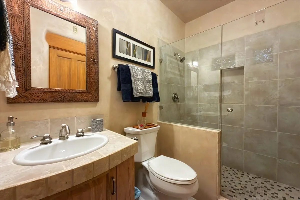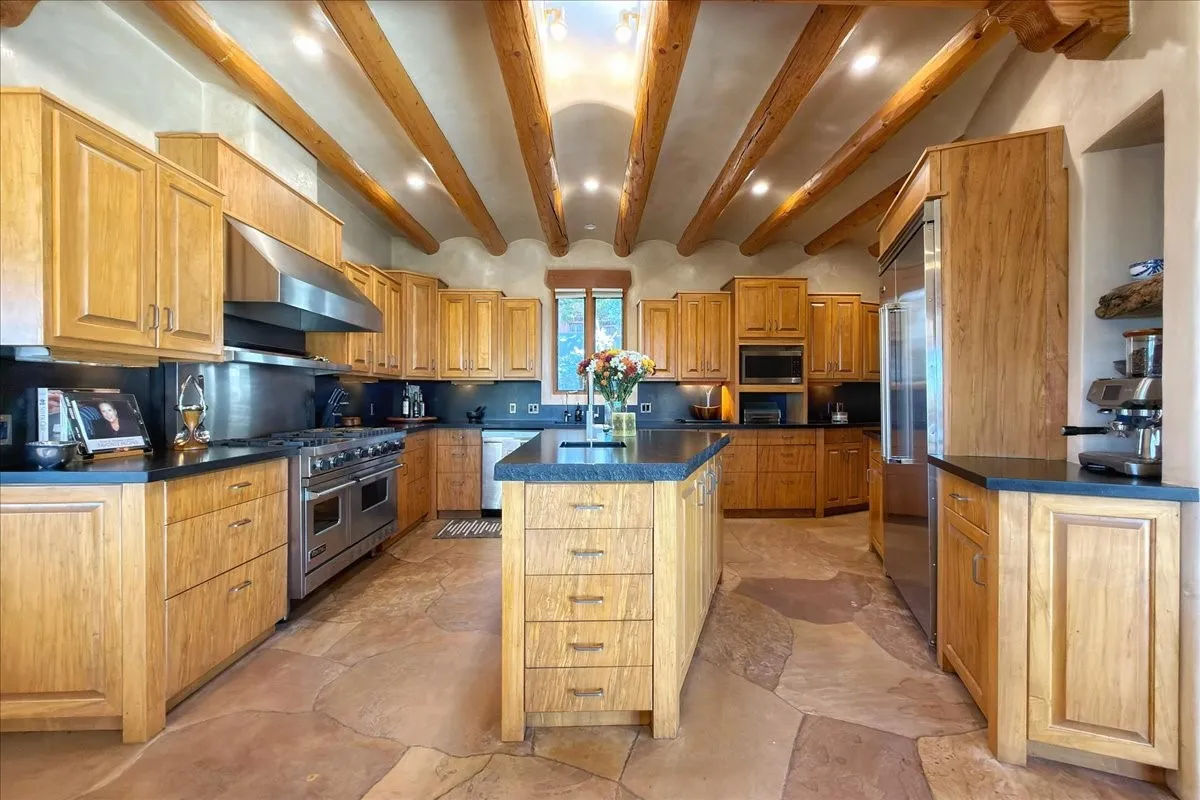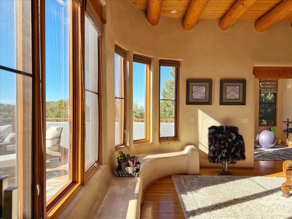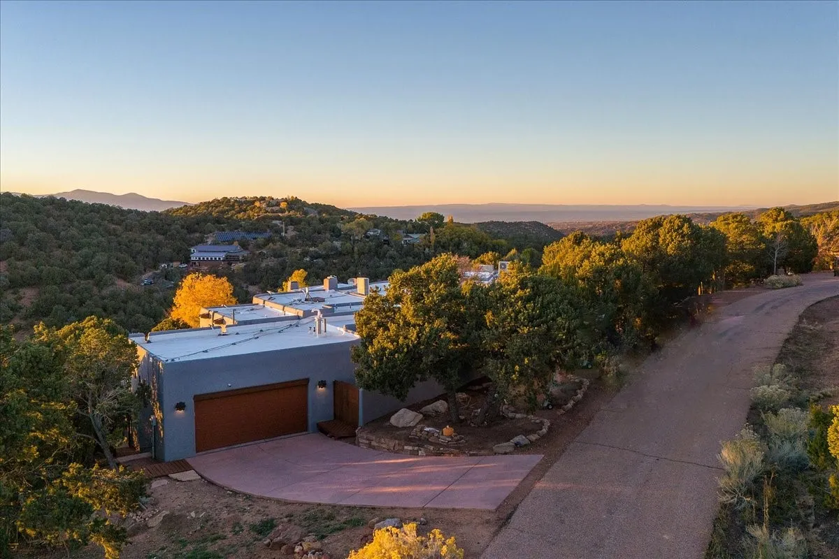 Whispering Hillāwhere natureās quiet beauty keeps its own gentle secrets. Set within Hyde Park Estates, this architectural statement captures panoramic vistas that are rare even for Santa Feāa dramatic sweep of horizon, sculpted mountains, and ever-changing light. Designed with a flexible five-bedroom layout, Whispering Hill offers versatility without sacrificing elegance. The main level functions as a complete living environment, ideal for those who prefer life without stairs. A tranquil primary suite, sophisticated gathering areas, and rare hardwood cabinetry set a tone of refined luxury from the moment you arrive. Throughout the residence, artisan ceilingsāeach one individually craftedāserve as sculptural centerpieces across both levels and extend to the outdoor entertaining terrace, where their artistry meets the surrounding landscape with extraordinary effect. The Whisper Media Lounge, anchored by a gigantic viewing screen, was envisioned for cinema, live sporting events, and immersive entertainmentāan atmospheric space designed for true enjoyment. The lower level continues the architectural flow with a second primary suite and additional bedrooms, each offering direct outdoor access to terraces, pathways, and quiet corners of the landscape. Outdoor living expands with multiple areas to gather, including a radiant-heated portal, a garden pavilion, secluded seating spaces designed for unplugged relaxation, and a private hot tub positioned just outside one of the lower-level bedroomsāa serene vantage point for stargazing and quiet evenings. From the elevated main terrace, you can see 10,000 Waves, Santa Feās renowned Japanese-inspired spa nestled among the pines. Across the grounds, irrigated landscaping enhances the natural contours of the site, ensuring year-round beauty, color, and ease of care. Climate comfort is thoughtfully supported by eight strategically placed mini-splits for individualized heating and cooling, working in tandem with the primary systems to ensure four-season comfort at altitude. A pre-listing home inspection has already been completed, offering added transparency and confidence for prospective buyers. Minutes from the Santa Fe Plaza, Whispering Hill is an exceptional choice for those seeking either a full-time luxury residence or an elevated secondary retreat. With premium upgrades far too numerous to list, rare materials, master craftsmanship, and one of Santa Feās most compelling vantage points, Whispering Hill stands as a true Santa Fe masterpieceāa seamless fusion of design, nature, and elevated mountain living.