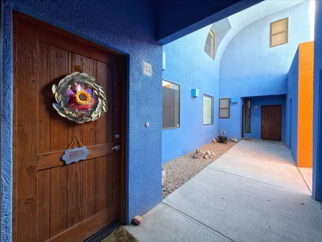 Discover comfort and convenience in this inviting 1-bedroom, 1-bath, ground-floor, single-level home in the desirable Zocalo Condominium community in Santa Fe, just one mile from the plaza. This residence offers easy living with an efficient layout and a peaceful setting.