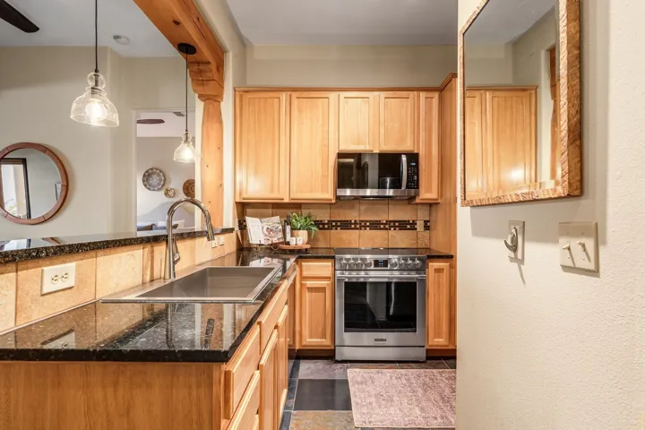 Live the life of luxury in this recently upgraded, ground floor, pool-side 2 bedroom/2 bathroom luxe condo at The Alameda! This exceptional unit is in a desirable corner location with a huge wrap around fenced private patio surrounded by landscaping. Just a few steps away is a heated pool with extensive seating, BBQ’s and cabanas. Enjoy the fine architectural interior features of high ceilings, wood vigas, tongue and groove ceilings, corbels and a handsome corner gas kiva fireplace. Significant upgrades have been made to this unit including: All new paint, stripped and sealed slate flooring (no carpeting!), all new stainless steel appliances and sink, new hot water tank, new washer/dryer This unit includes a one-car garage and 115 square foot storage room. The Alameda is a luxury amenity condominium gated community that includes: Heated outside swimming pool; Fitness Center; Party Rooms with Kitchens and Lounge Areas throughout and a Dog Run. There is also an onsite professional manager and 24 hour controlled access. Fabulous location and close to shopping, dining and entertainment. This great opportunity can be yours so