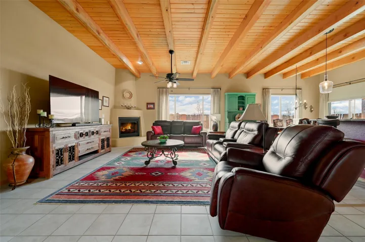 Located in the highly sought-after La Pradera subdivision, this refined Pueblo-style residence embodies the ease and elegance of Santa Fe living. The property features a spacious 1,692 sq ft main home and a charming 394 sq ft casitaāideal for hosting guests, creating a private studio, or generating rental income. The main home welcomes you with an expansive open-concept great room, where the kitchen, dining, and living areas blend seamlessly under warm Southwestern accents and a classic kiva fireplace. A thoughtful floor plan provides excellent bedroom separation, ensuring comfort and privacy for both residents and guests. The luxurious primary suite offers a soaking tub, walk-in shower, and dual walk-in closets, creating a serene retreat. Across a beautifully designed courtyard, the casita offers its own bedroom, 3/4 bath, a cozy living area, and a kitchenette, providing guests with independence and comfort throughout their stay. A rare 3-car garage enhances both convenience and storage. The neighborhood features extensive paved and natural walking trails, as well as a playground, making it ideal for an active lifestyle. The home also backs to protected open space, offering added privacy and unobstructed views. Designed for low-maintenance living, the xeriscaped landscaping makes this an ideal second home or lock-and-leave retreat. Even better, all furniture conveys (excluding art and rugs), allowing you to step effortlessly into the Santa Fe lifestyle from the moment you arrive.