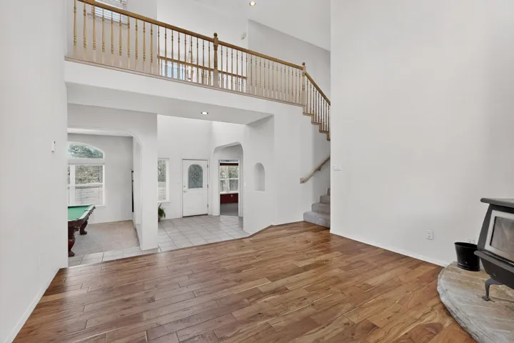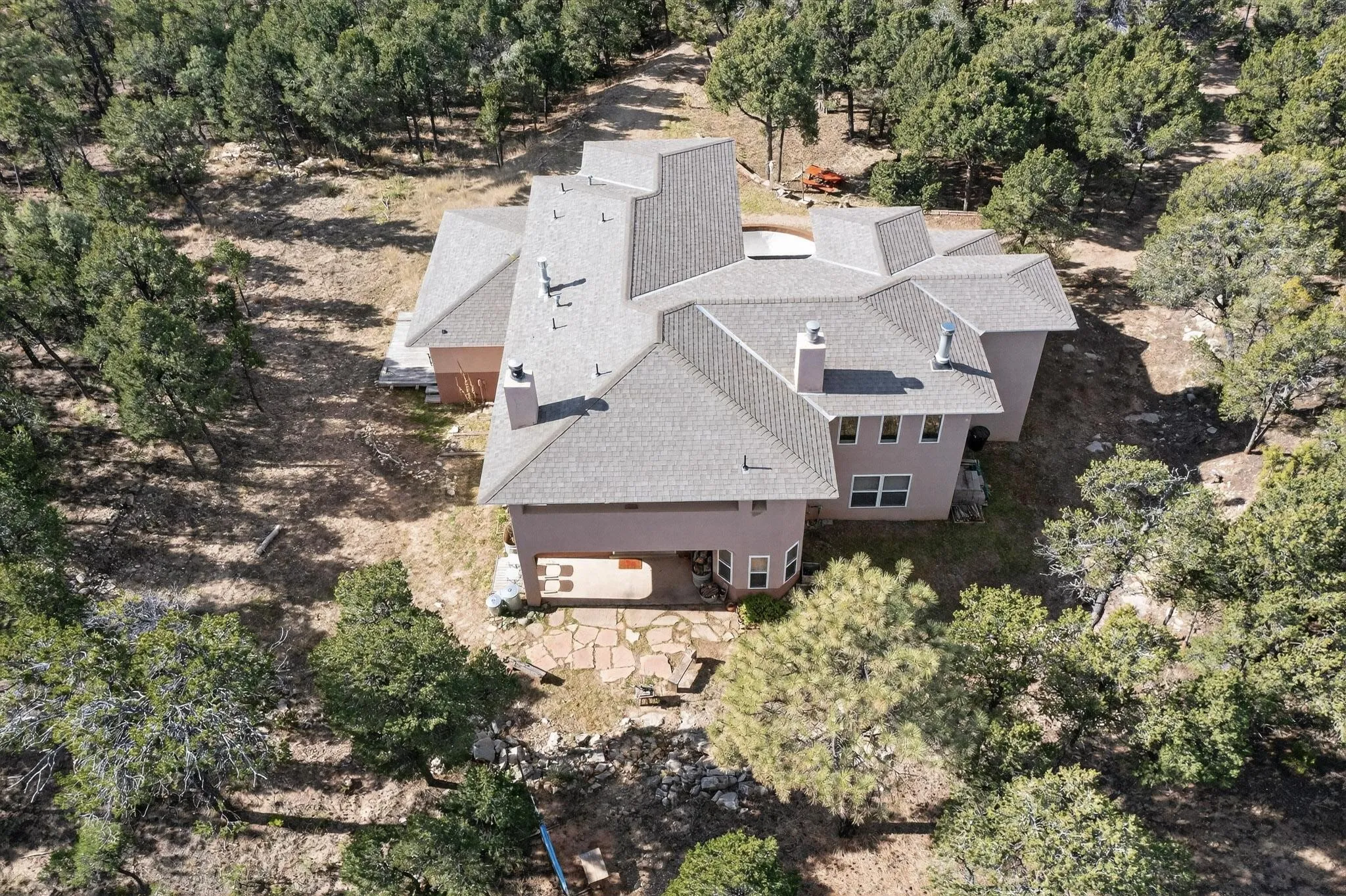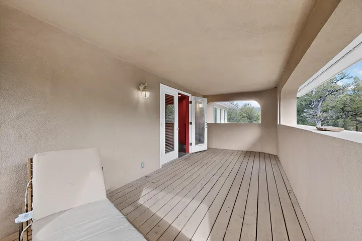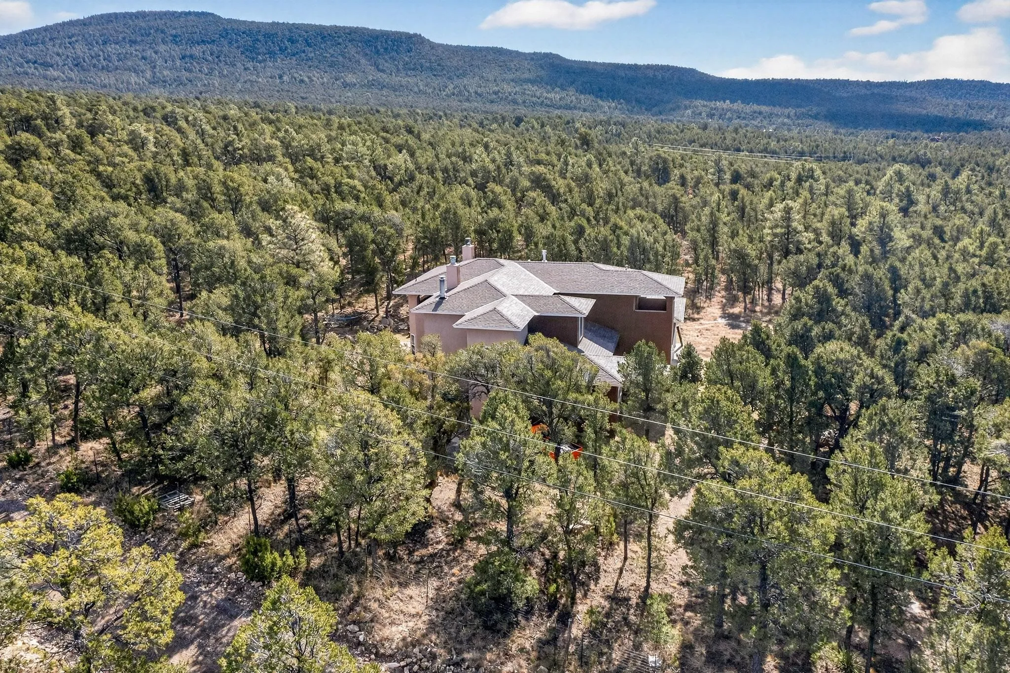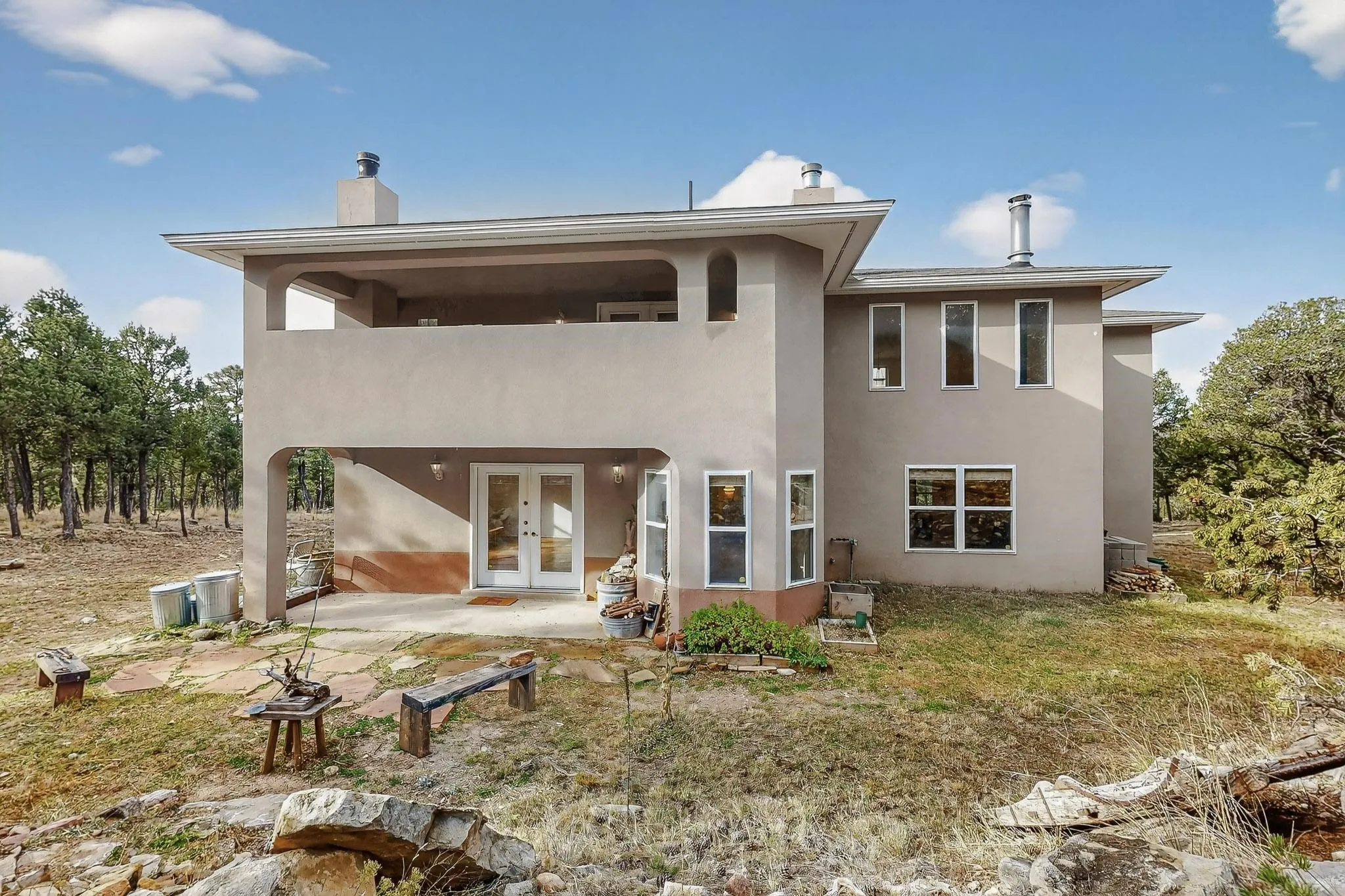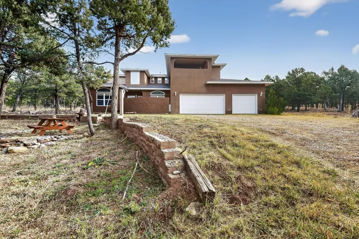 Custom 2-story home sited on 2.32 +/- fully fenced acres. The expansive floorplan includes great room with wood burning stove and tall ceilings, Chef’s kitchen with breakfast nook, family room with Kiva fireplace, bonus room, 2 full baths and 3/4 bath, laundry room and oversize and finished 3 car garage. All 3 bedrooms are up stairs, primary has wood burning fireplace and view balcony, 2nd bedroom has a second view deck facing to the north with views to the Santa Fe National Forest, 2nd and 3rd bedrooms share “jack n jill” bathroom. The home boosts extensive closets, all appliances included – refrigerator, stove/oven, washer, dryer, dishwasher, French doors to back patio, 2 fireplaces and 1 wood stove, granite kitchen counters. The 2.32 +/- acres includes a circle driveway, are nicely maintained with Juniper, Pinon and a large Ponderosa Pine tree, block retaining wall, private well with 3 acre feet of domestic water rights, buried and owned propane tank, and picnic area with a picnic table. Located just beyond the Village of Pecos the property at 16 Coyote Lane has much to offer buyers.