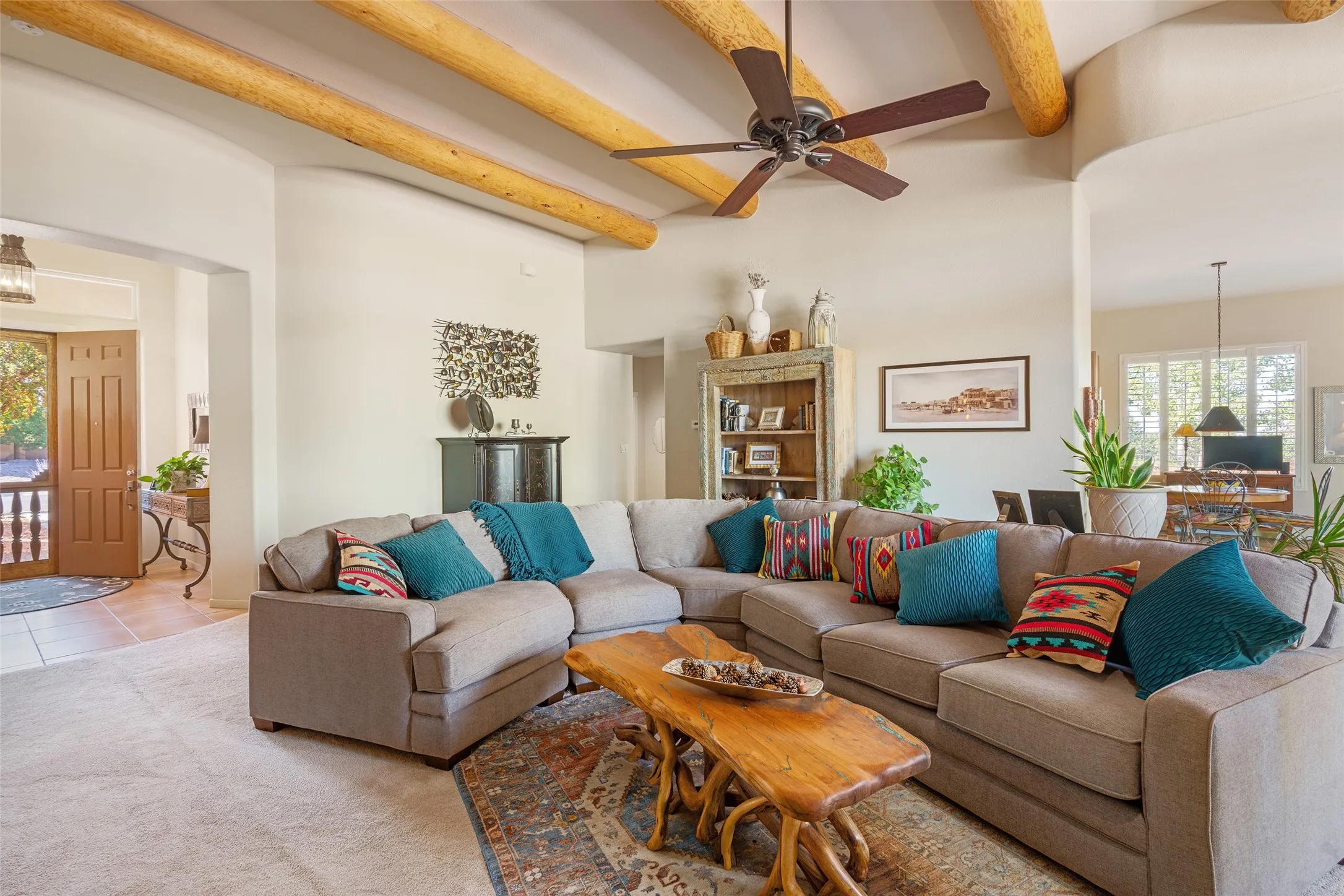 Welcome to this exceptional home, perfectly sited on a spacious lot at the end of a quiet cul-de-sac, with open space on two sides and gorgeous sunset views. Enjoy evenings by the outdoor fireplace as the sky puts on its nightly show. Thoughtfully updated by its current owners, this property offers tremendous value in todayās market. With three bedrooms, four full baths, including an ensuite office, and a studio (easily used as a fourth or even fifth bedroom), the home provides remarkable flexibility for every lifestyle. The heart of the home is the magnificently remodeled chefās kitchenāan absolute showstopper. Bosch appliances, beautiful two-tone cabinetry, subway tile with mosaic accents, hand-punched tin details, brick-set tile flooring, and a mix of granite and quartz countertops come together in a space any cook will adore. The dining room is inviting and generous, designed to host family gatherings and memorable evenings with friends. The living area offers vigas overhead, a wood-burning fireplace, and warm natural lightāa perfect space for cozy winter days. The primary suite is a private retreat: spacious, serene, and complete with a beautifully updated bath with customized walk-in shower, dual hammered nickel sinks and lighting, and an excellent walk-in closet. Itās a haven for mornings that start slow and evenings that wind down in comfort. Additional upgrades made during this owner’s tenure include a new boiler and evaporative cooler, new carpeting, fresh interior paint, new ceiling fans and custom lighting, plus plantation shutters throughoutāboth beautiful and energy-efficient. Exterior wise, the stucco was also recently replaced and refreshed and the rear yard has been enhanced with new rock landscaping, pathways, and fruit trees, creating a peaceful outdoor escape. The slightly oversized garage is another welcome bonus with additional storage shelves. Located in the desirable Village at Rancho Viejo, this community offers miles of paved walking trails, multiple parks, sensible covenants, friendly neighbors, and convenient access to shopping and restaurants. Roughly 12 miles to the Santa Fe Plaza, this fantastic home delivers!