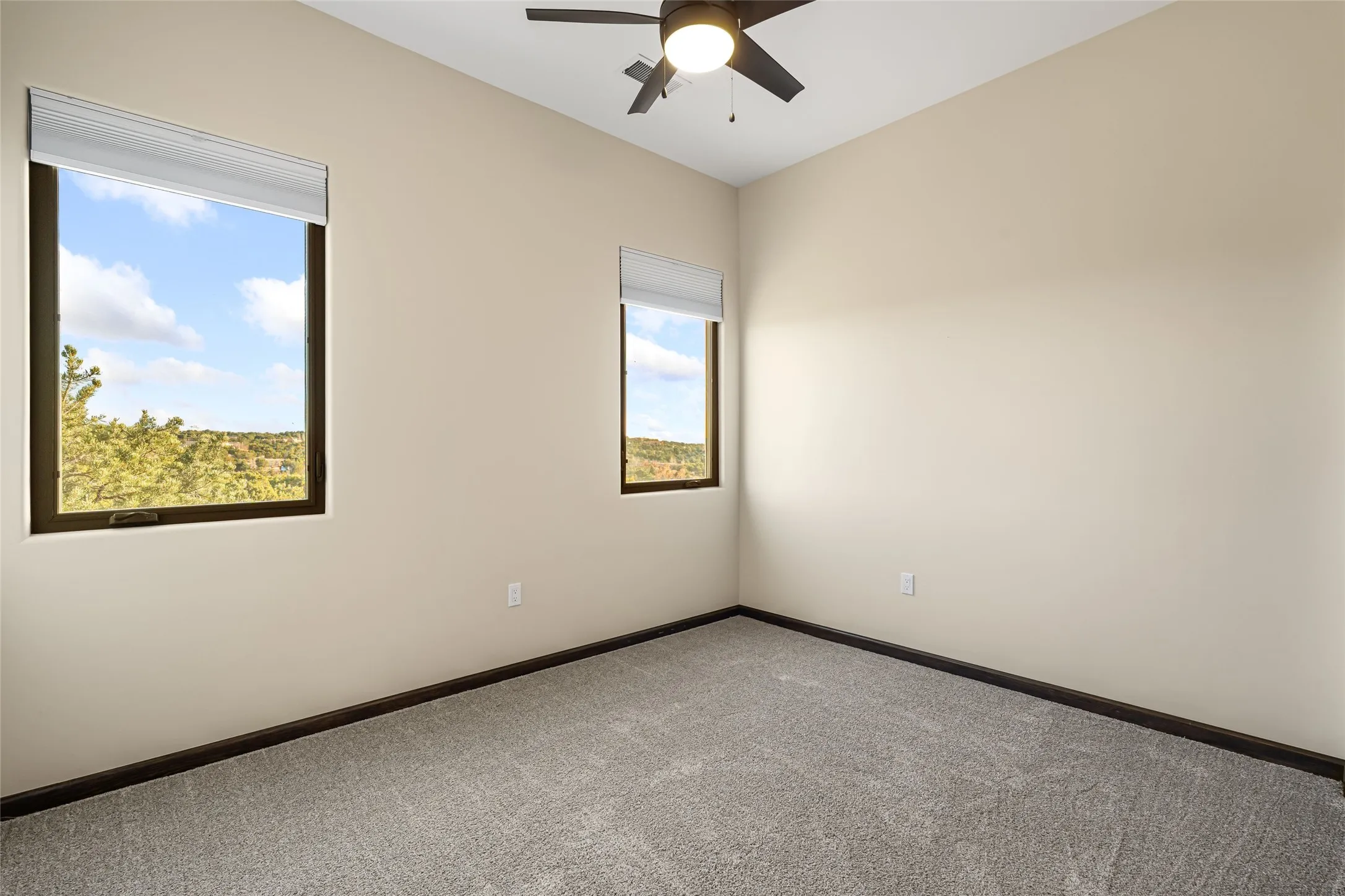 Thoughtfully designed for optimal privacy and separation from the Guest Wing, the spacious Primary Suite offers a serene retreat with captivating morning sunrise views and direct access to the east-facing patio. The spacious en suite Primary Bathroom features dual vanities, a free-standing soaking tub, and a large walk-in shower.
