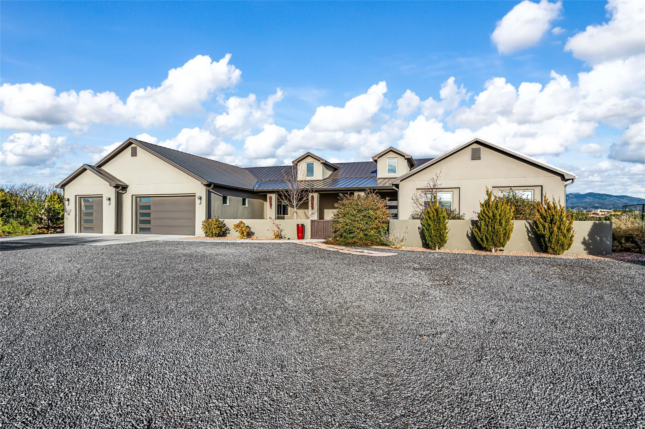 Step into grandeur and breathtaking views of the majestic Sangre de Cristo Mountains in this spectacular Northern New Mexico-style home. Perfectly sited on 3.25 acres to capture both sunrise and sunset views, this 2022 custom-built residence blends contemporary style with a spacious, thoughtful floor plan ideal for both large-scale entertaining and comfortable everyday living.