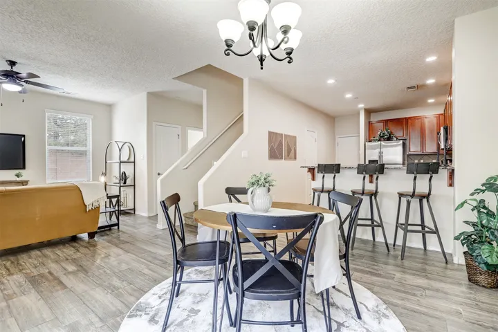 **Open House Sunday 11/23 from Noon – 2PM if still available** Discover the vibrant Santa Fe lifestyle in this centrally located condominium just minutes from shopping, dining, the historic plaza, and commuter routes. Priced for a quick sale, this home captivates from the moment you step inside! Enjoy modern comforts with a new furnace and ref air (2024), stylish downstairs tile flooring upgrade, outside patio, and a modern kitchen featuring 42-inch cabinets, solid granite slab countertops, stainless steel appliances, and a spacious pantry. Each of the three baths has shower svc, while the upstairs laundry includes a granite-topped folding counter. The expansive primary suite offers dual sinks, a built-in medicine cabinet, and a walk-in closet. Making this an ideal lock-and-leave unit, the worry-free HOA covers building exteriors and common areas.