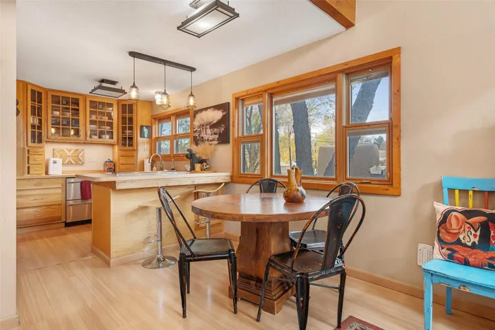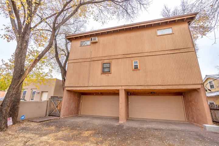 No fees and a great opportunity to live 5 blocks to the historic plaza and kitty corner to Kaune’s neighborhood market. This tri-level condo is one of 3 units with NO monthly fees hidden amongst the trees. If you know Santa Fe, you know what a desirable and close in location this is. This home would make a great full time, 2nd home or rental. The split level floor plan has two bedrooms, one bedroom on lower level and one on top level for maximum privacy. Each bedroom has a 1/2 bath for convenience. On the middle level you will find the Kitchen/living area which is beautifully bright with an abundance of windows and natural light. In addition, there is a large balcony surrounded by mature trees giving a sense of being in the mountains but yet right in town! All this and a two car attached garage with interior access. There is a gate next to garage with access to front of home as well as access to the quaint Pino Road that runs along the Acequia Madre.