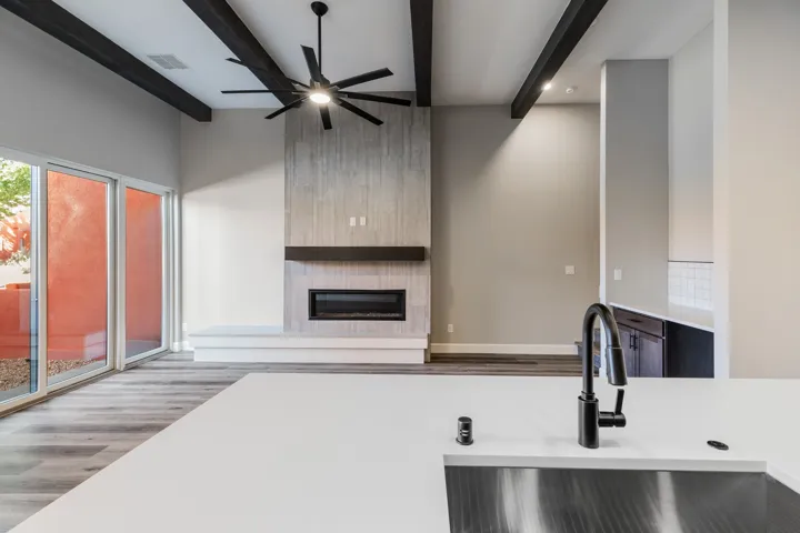 Experience sophisticated Santa Fe living in this stunning move-in ready multi-level condominium that lives like a townhome. With 3 spacious bedrooms, 3 full bathrooms, and a 2-car garage, this home showcases beautiful modern finishes and elegant lighting throughout. The great room features a floor-to-ceiling tiled fireplace, while the lower levelās box-beamed ceilings add a touch of timeless Santa Fe charm. Enjoy the warmth of SPC luxury vinyl flooring underfoot, unwind in the spa-like soaking tub, or cozy up by the fireplace in the primary suite. Located in Zocaloāan architectural gem just minutes from the historic Santa Fe Plazaāthis home offers incredible community amenities and is perfect for both full-time living or a lock-and-leave lifestyle.
