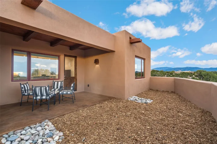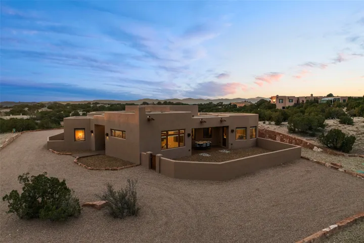 Donāt miss the hilltop luxury of this brand-new, beautifully crafted home! This rare single-level residence offers four spacious bedrooms ā each with its own private bath ā plus a dedicated office and a flexible space perfect for a home gym or studio. The expansive primary suite features two walk-in closets and a spa bath complete with a gorgeous soaking tub. The stunning chefās kitchen with double islands designed for cooking, gathering, and entertaining is truly the heart of the home with a massive walk-in pantry ensuring everything has its place. With dining on one side and cozy informal sitting on the other, the kitchen becomes not just a place to prepare meals but the center of family gatherings and entertaining. All flows easily into the living room with stunning mountain views. Enjoy year-round comfort with radiant heat, forced air heating, and air conditioning. Set on a desirable hilltop, this home delivers dramatic, close-up views of the Sangre de Cristo Mountains. Youāll love the feeling of privacy and escape just minutes from downtown Santa Fe ā all within the secure, gated community of Las Campanas, known for exceptional care, amenities, and peace of mind. If youāre seeking top-notch design, luxurious comfort, an unbeatable location, and a lifestyle that meets your every wish⦠this is it!